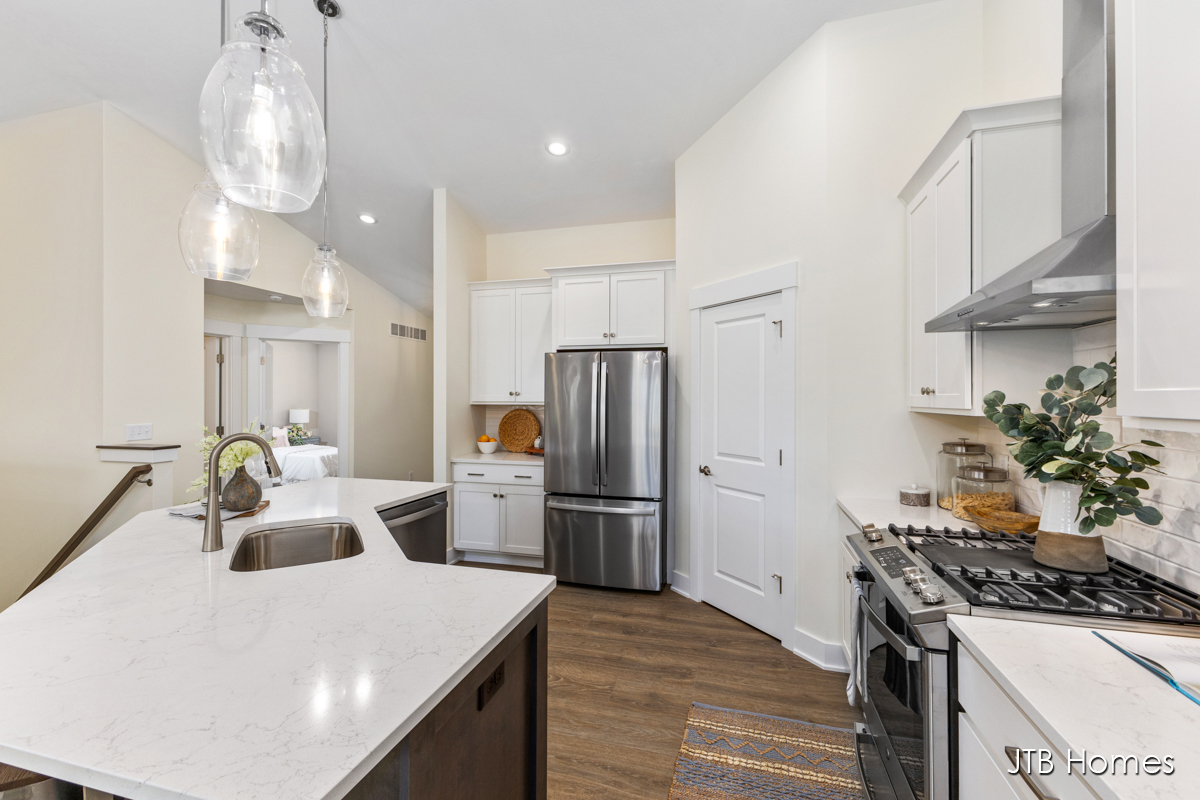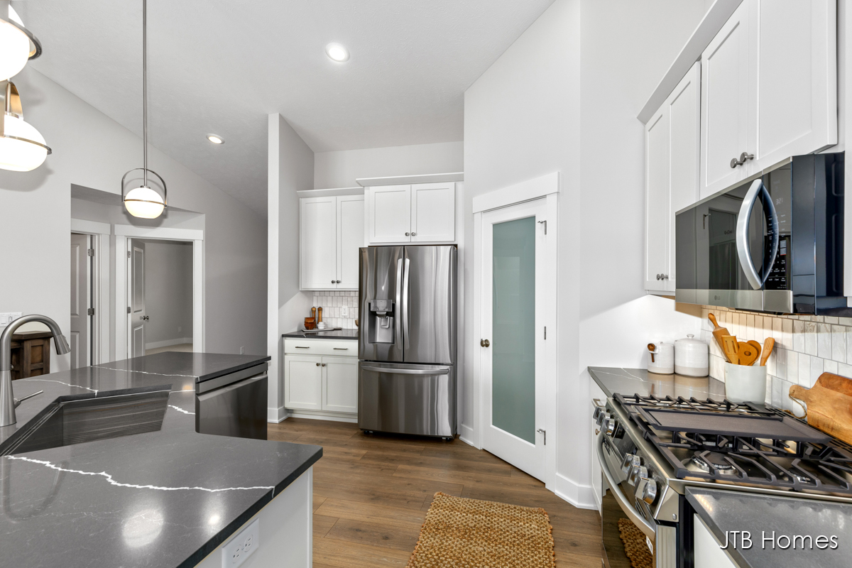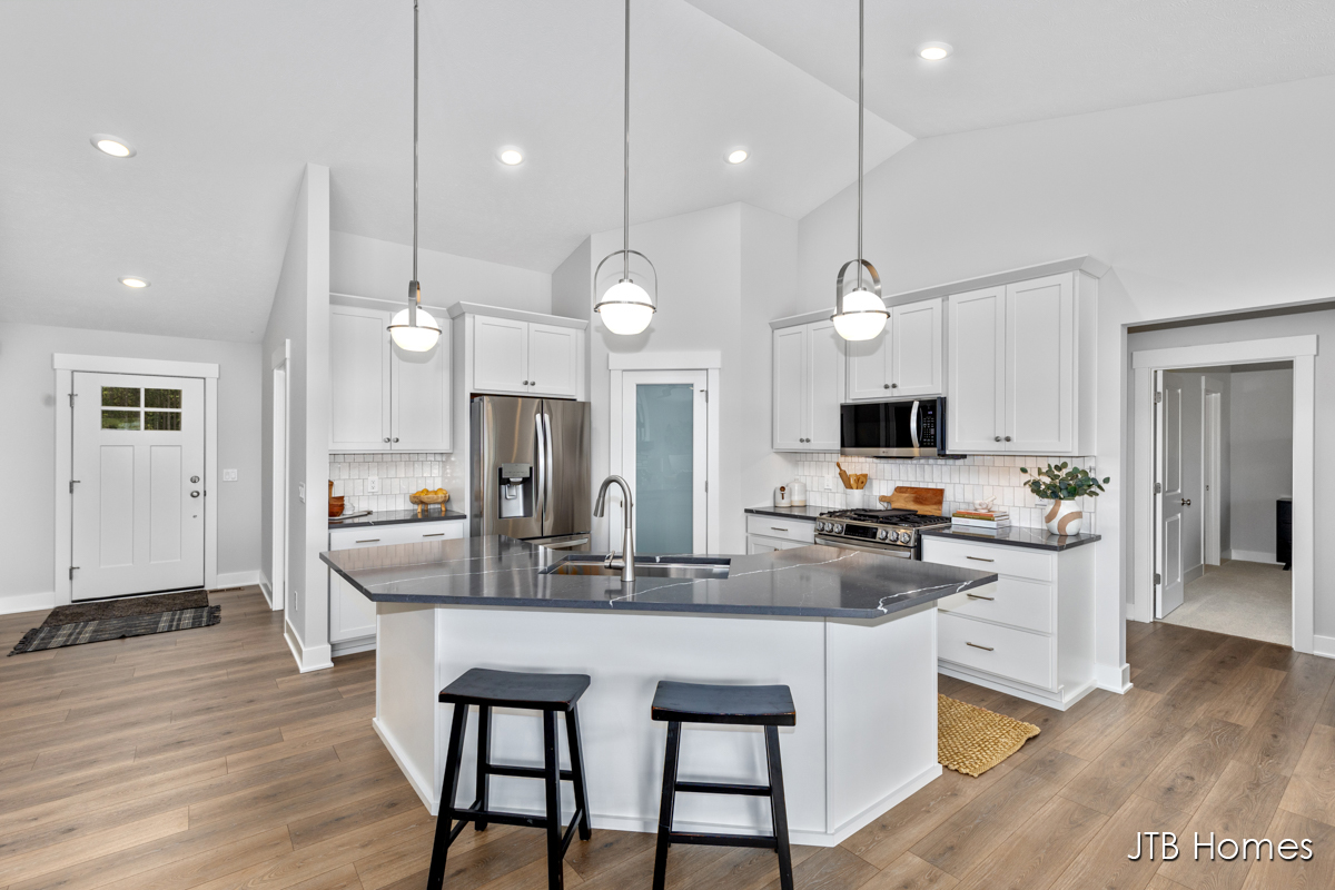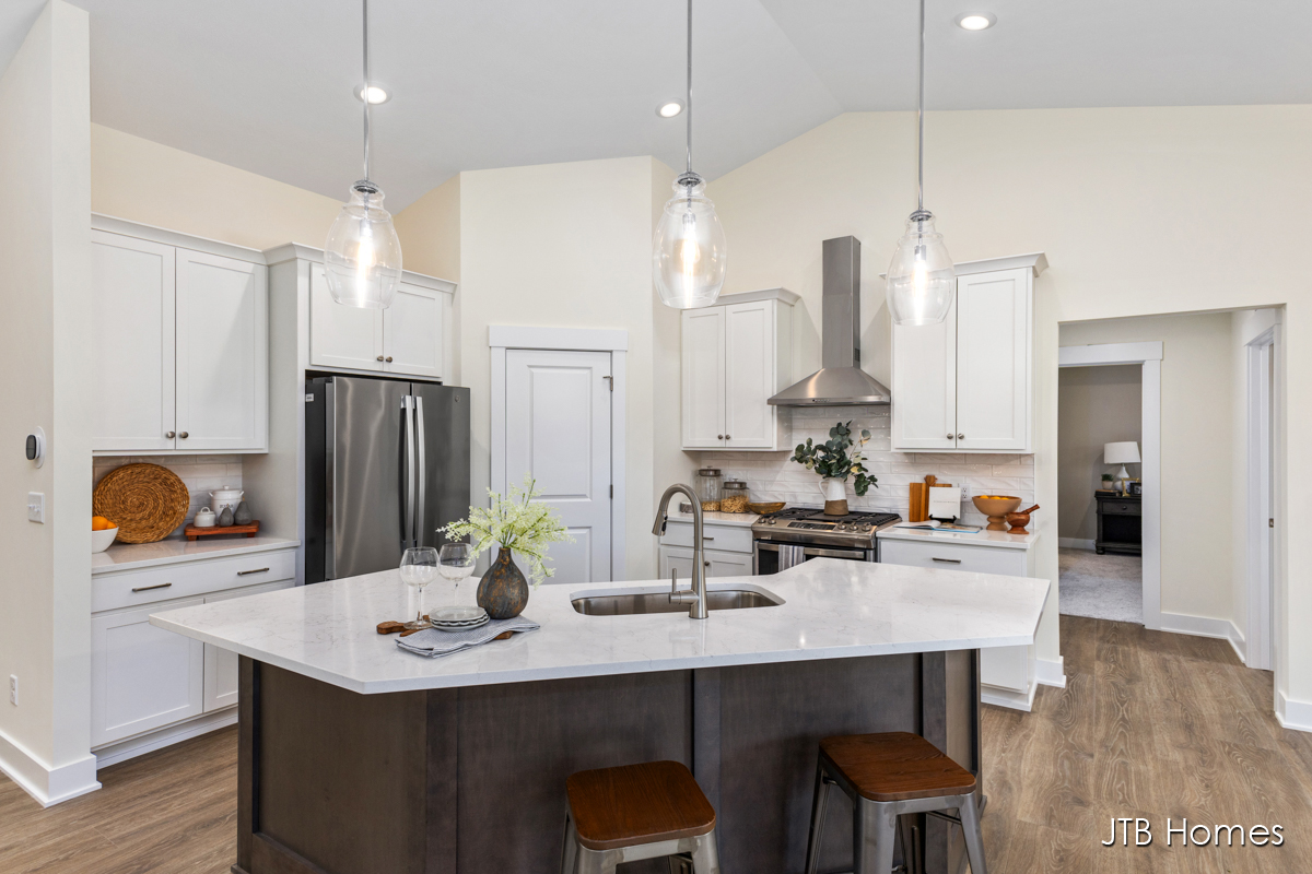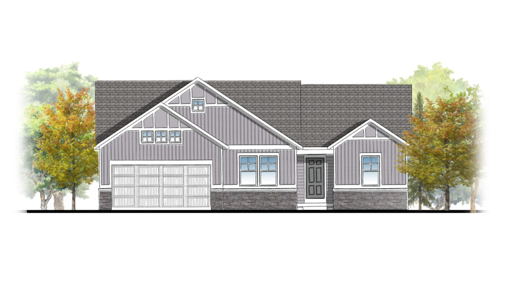 Welcoming ranch style home with an entry foyer leading into the open-concept great room, dining area and kitchen complete with large snack ledge on the island and a suitable corner pantry. The primary bedroom suite and guest rooms are separated to create privacy. The primary suite features a private bath with dual-sink vanity and over-sized walk-in closet. Optional downstairs bedroom, bathroom and recreation room.