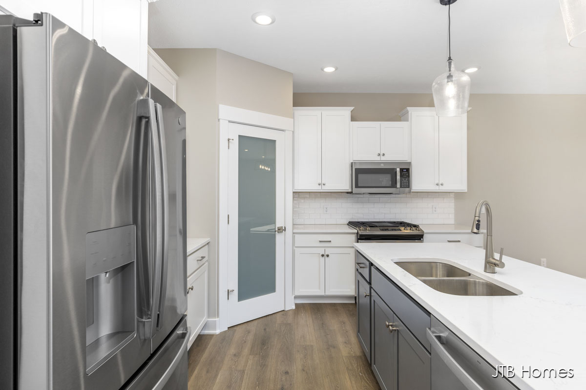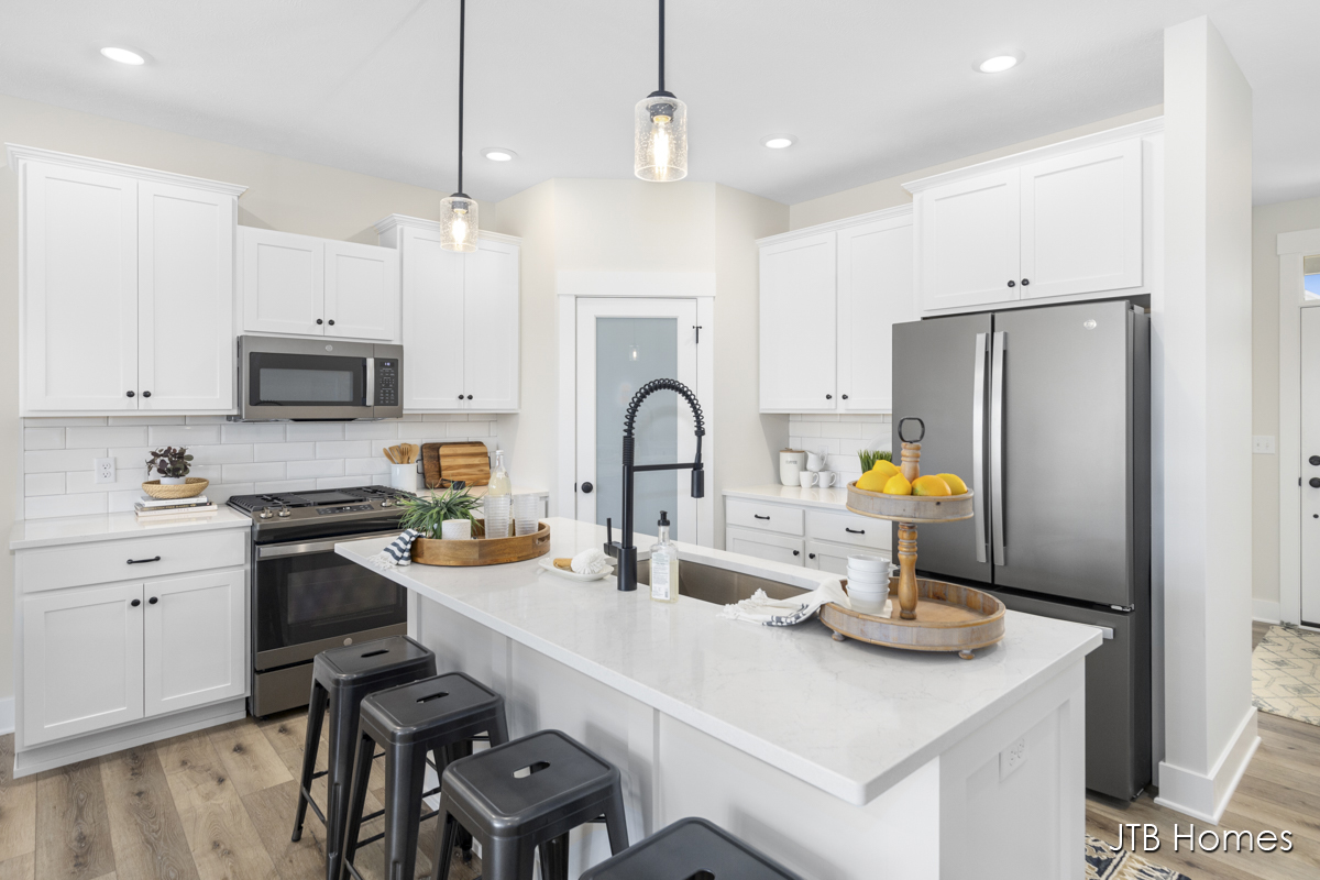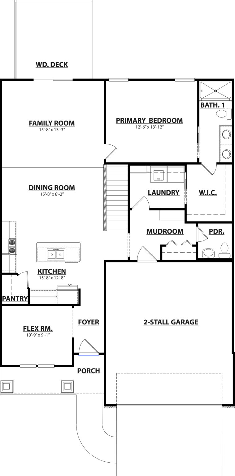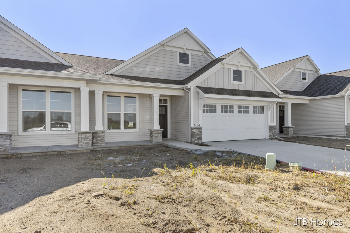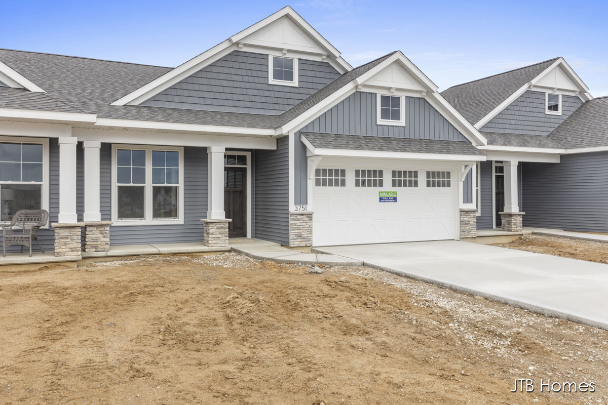 Ranch style condo with larger kitchen complete with walk-in pantry and snack ledge in island. Primary bedroom suite features a private bathroom with dual-sink vanity, spacious walk-in closet with access to main floor laundry. The flex room creates additional secluded living space. A powder bathroom for guests is off the mudroom. The Norwood is always the middle unit of the building. Zero-step entry available.