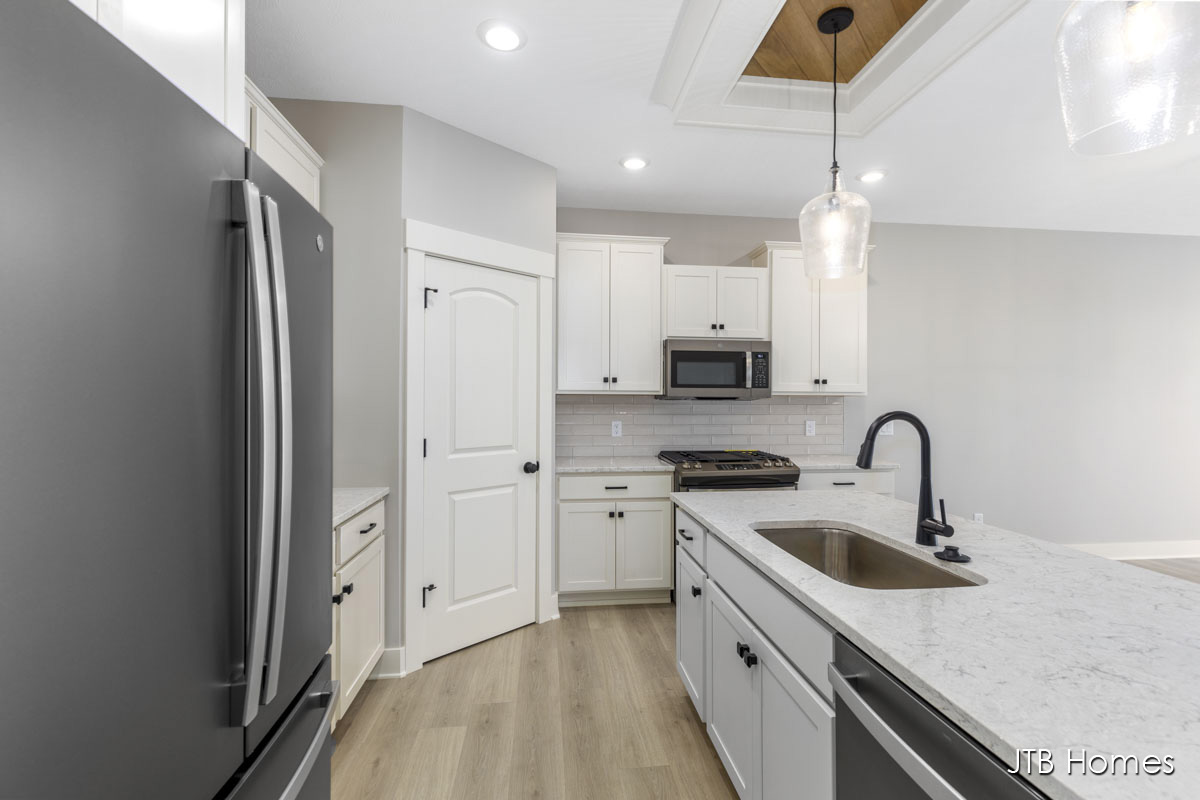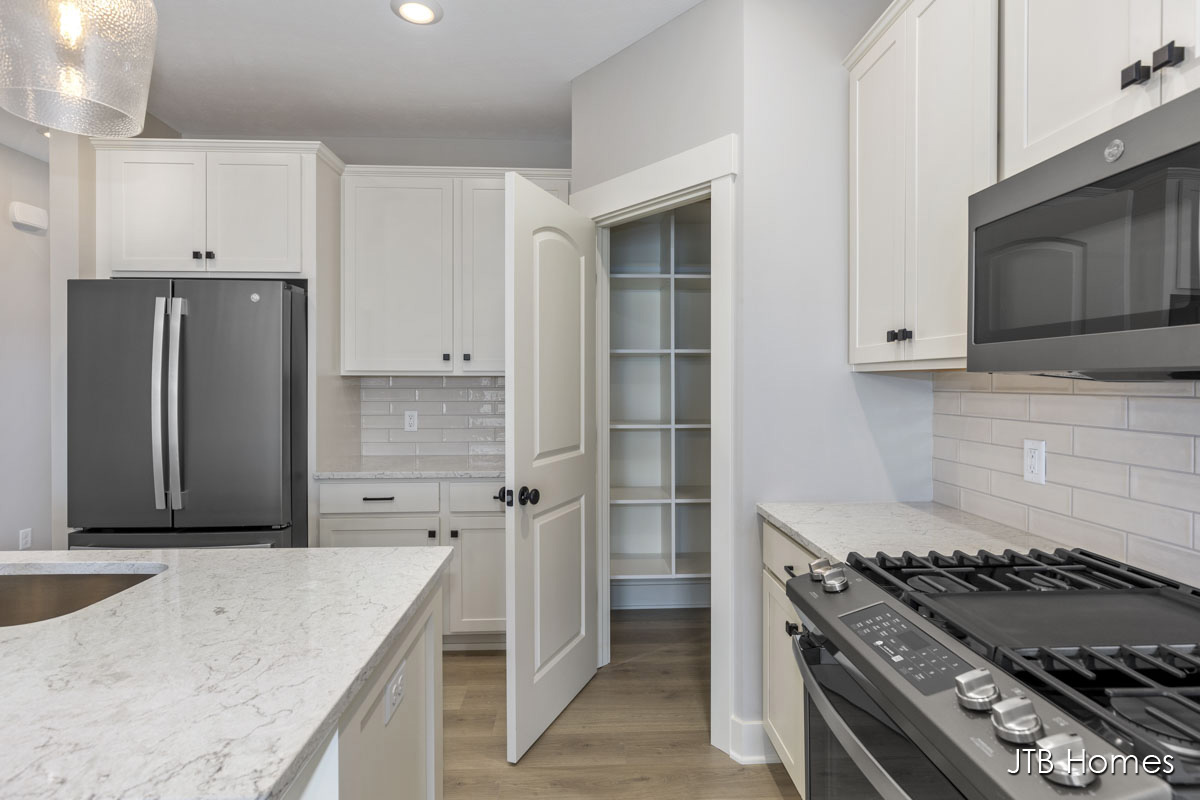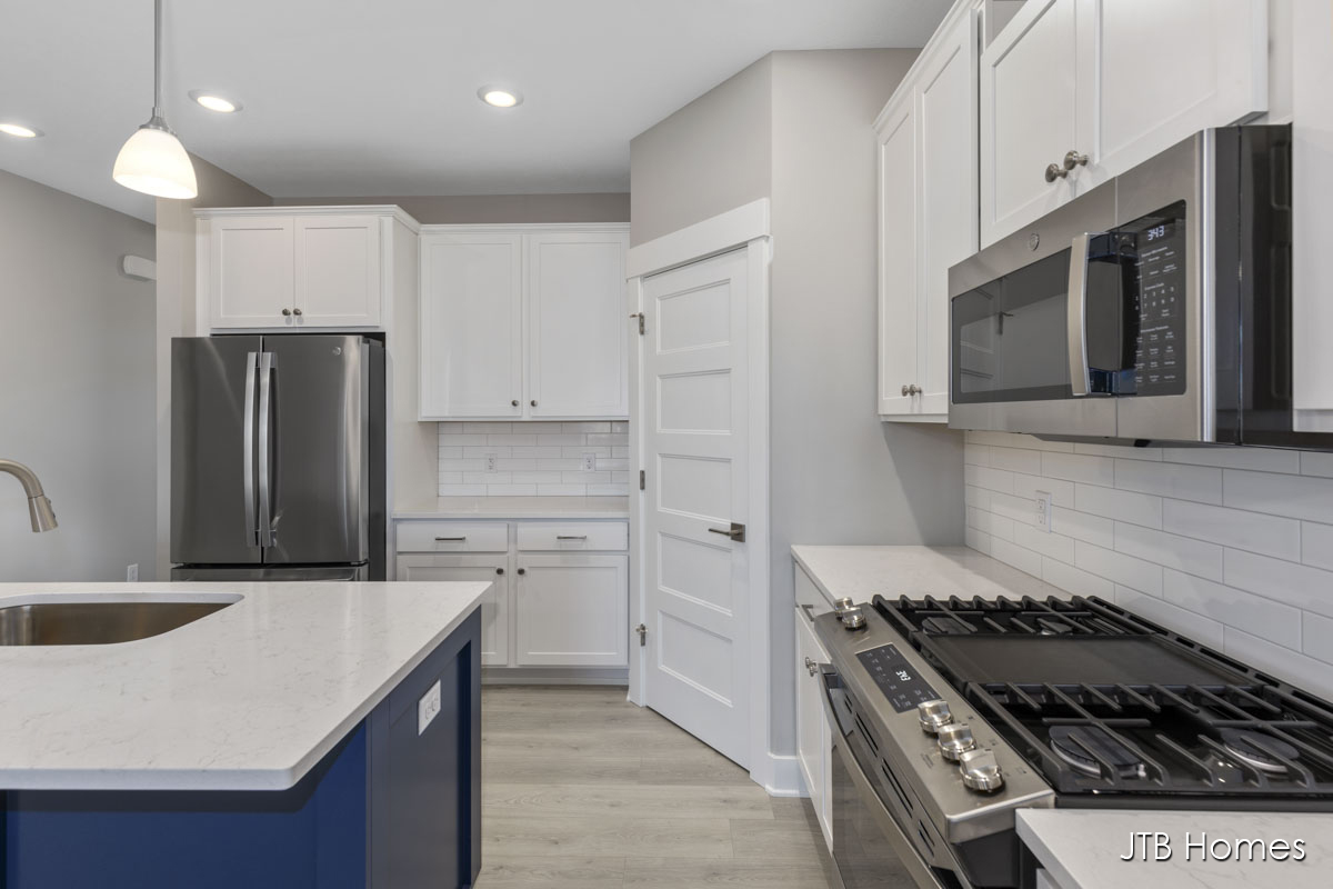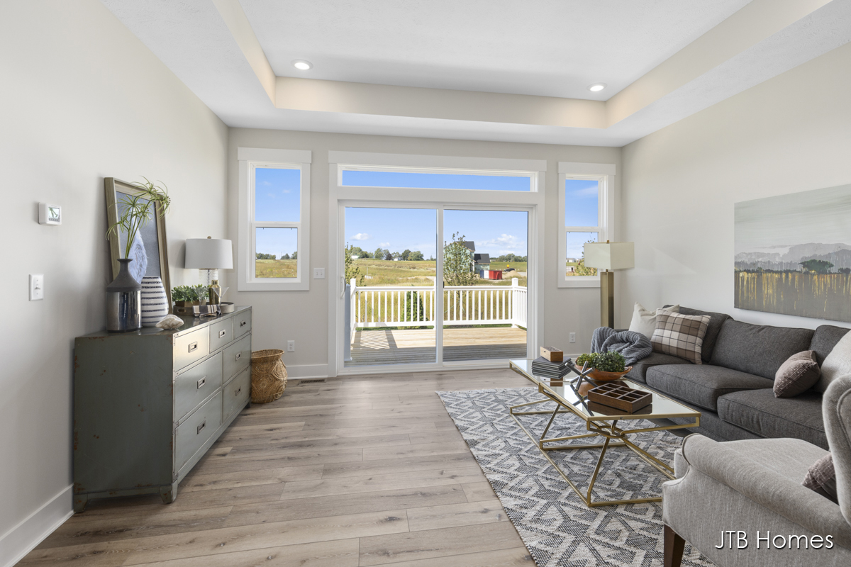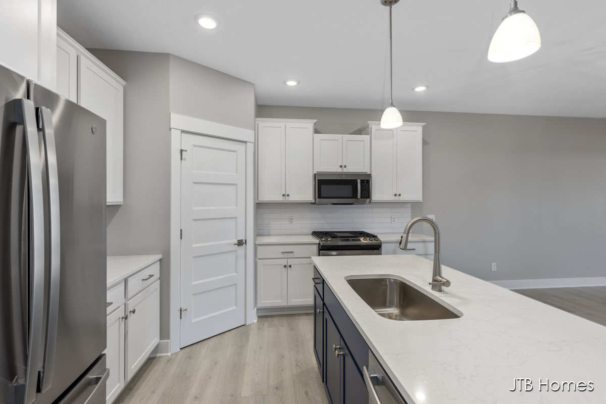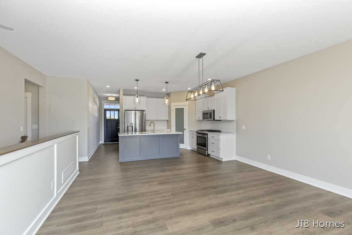 Ranch style condo with larger kitchen complete with walk-in pantry and snack ledge in island. Primary bedroom suite features a private bathroom with dual-sink vanity, spacious walk-in closet with access to main floor laundry. The flex room creates additional secluded living space. A powder bathroom for guests is off the mudroom. The Norwood is always the middle unit of the building. Zero-step entry available.