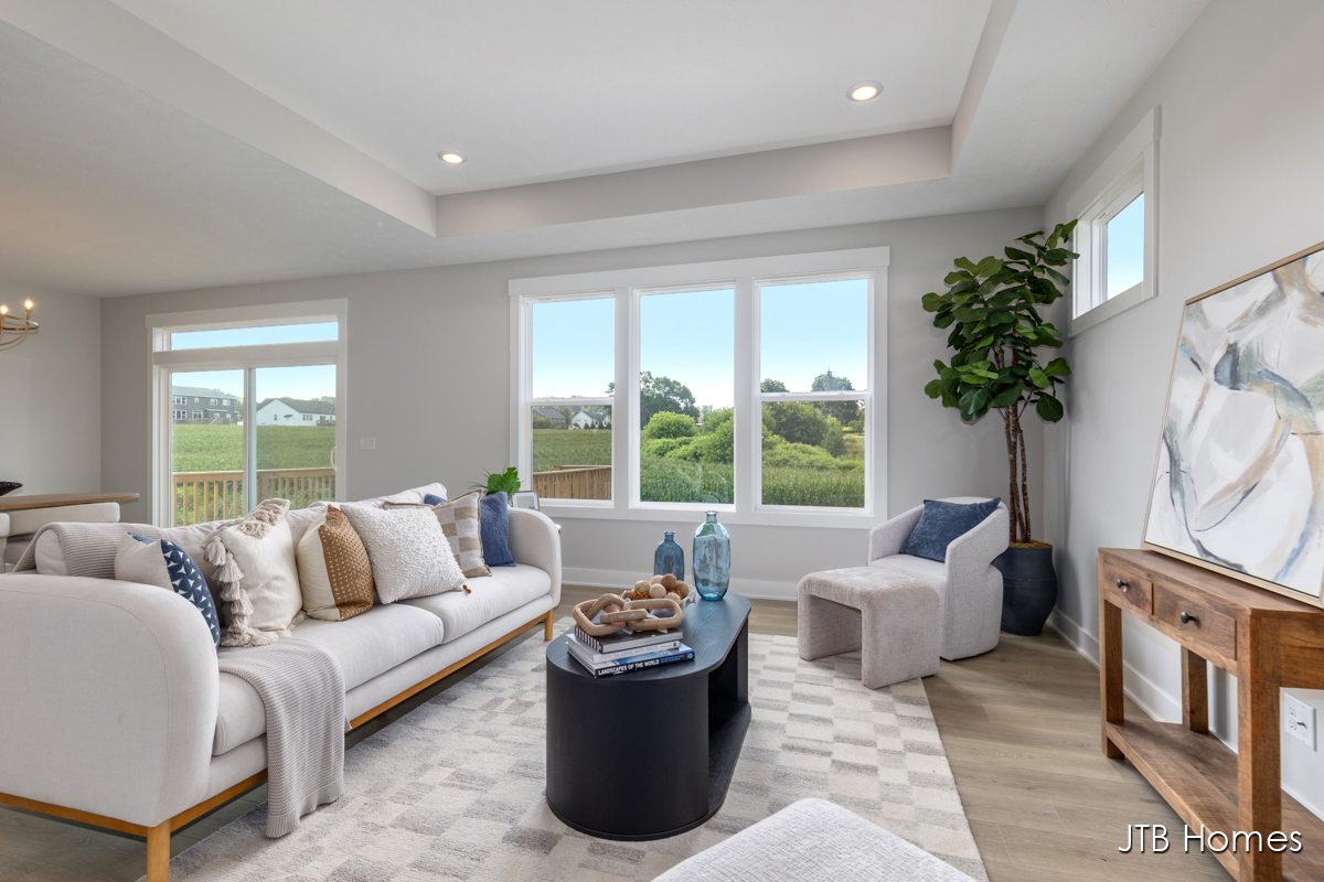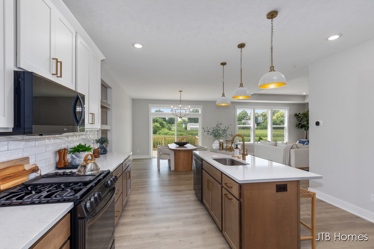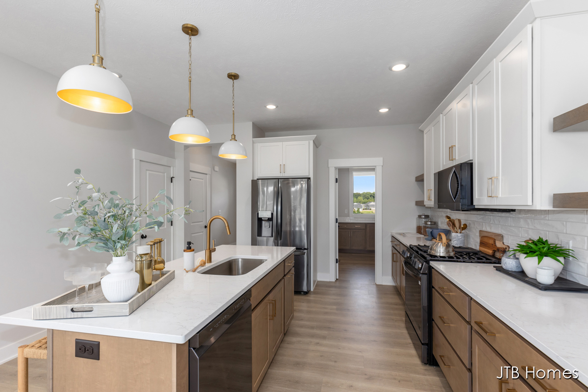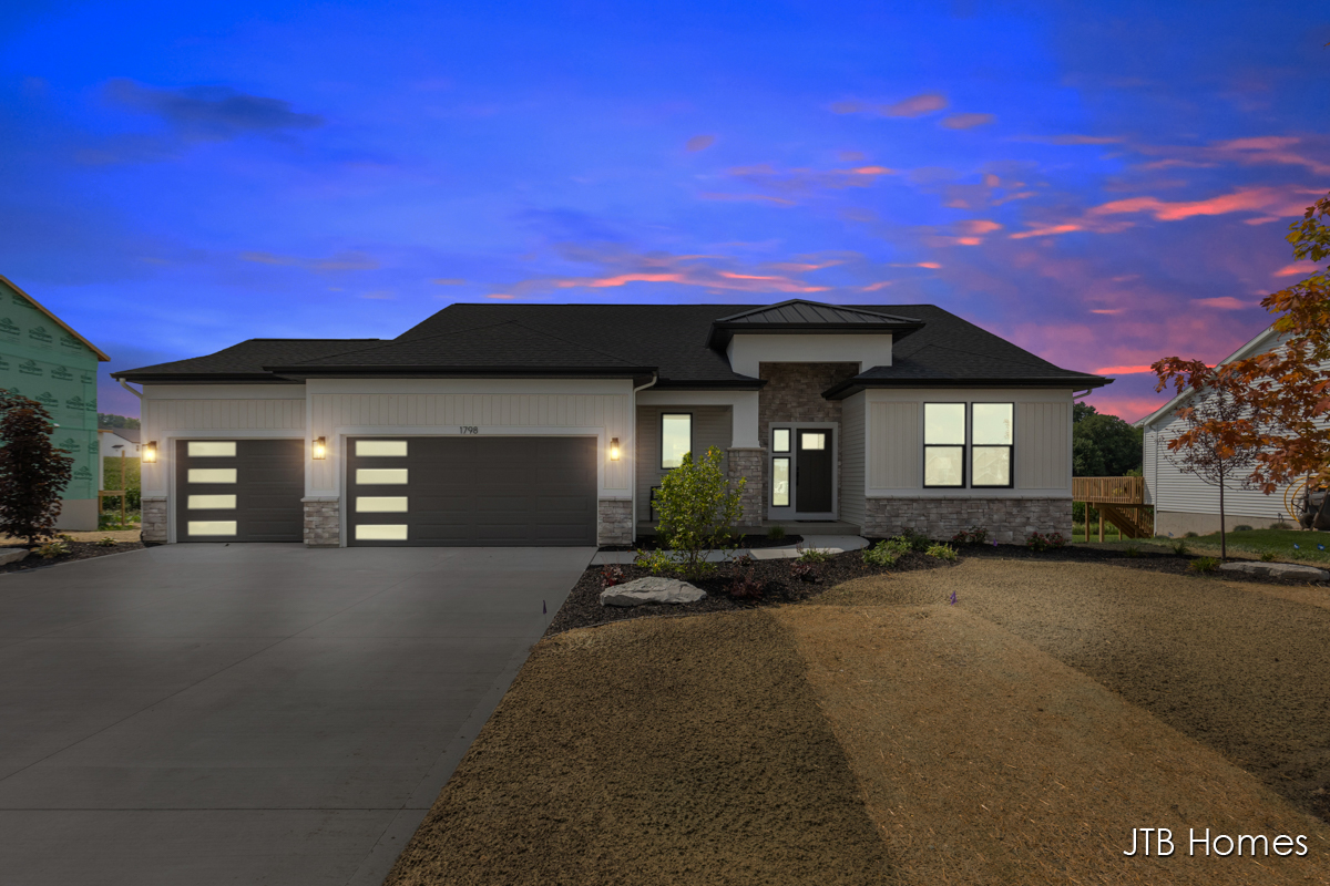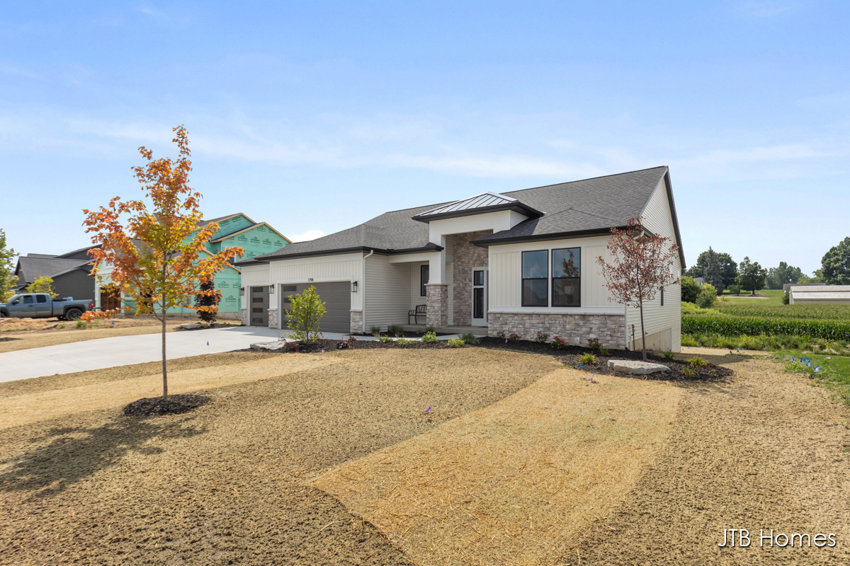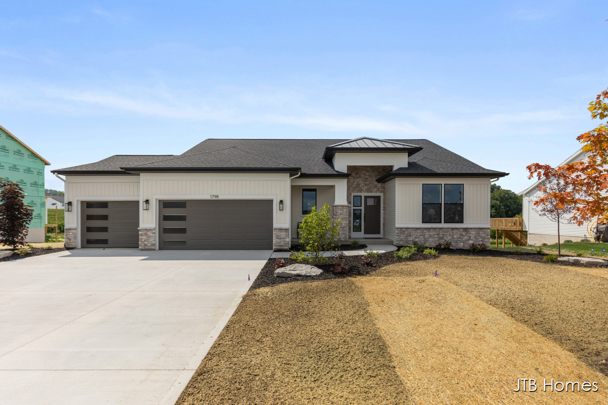 JTB Homes presents our Oakwood floorplan with the brand new modern looking front elevation. Welcome to one of the newest floor plans from JTB homes! This is a modern and open ranch plan with a large living room, dining area, and kitchen with a butlers pantry. You will find a 12 ft wide, 3rd stall garage. The extras located throughout the home start with solid surface flooring, upgraded handrails, a 2nd sink in the spacious pantry, 9 ft. ceilings on the main floor with a 10 ft. tray ceiling in the living room. The home comes with black stainless steel LG kitchen appliances.