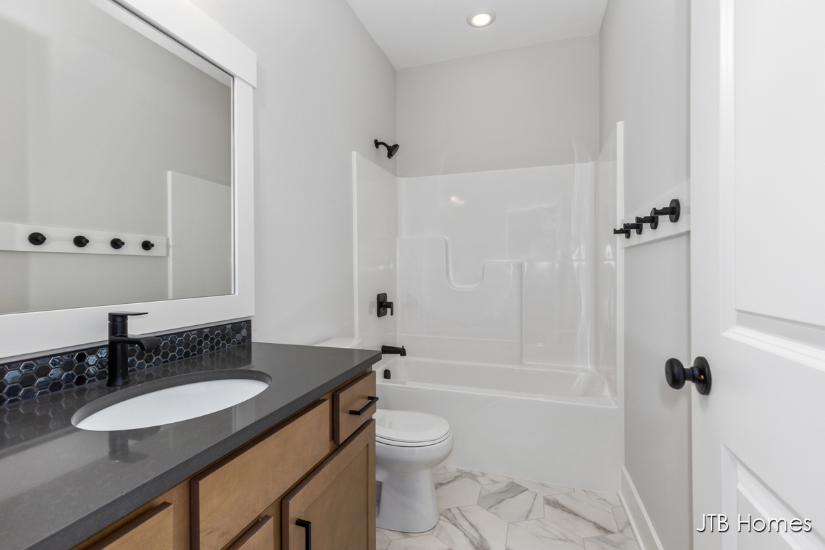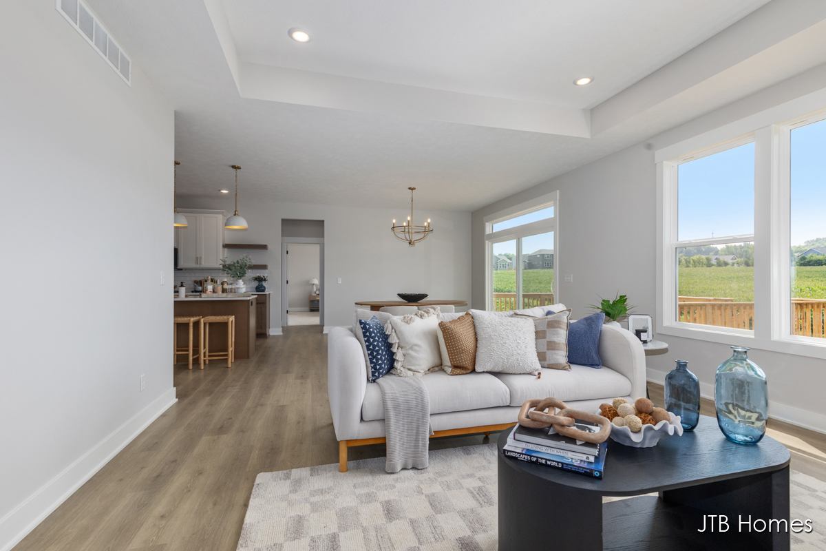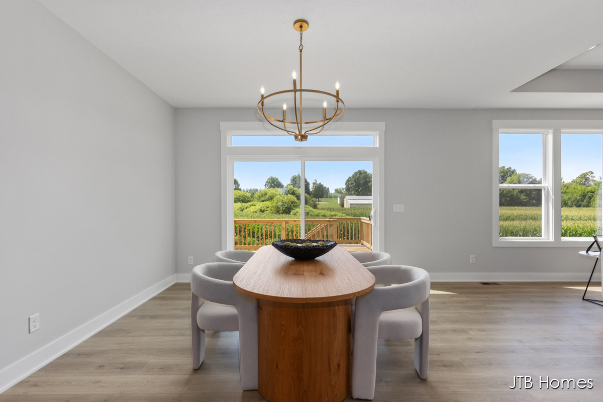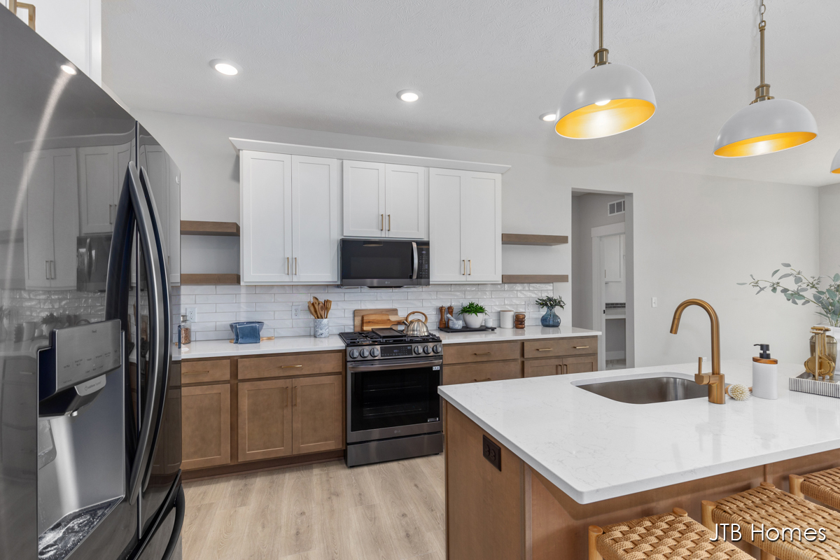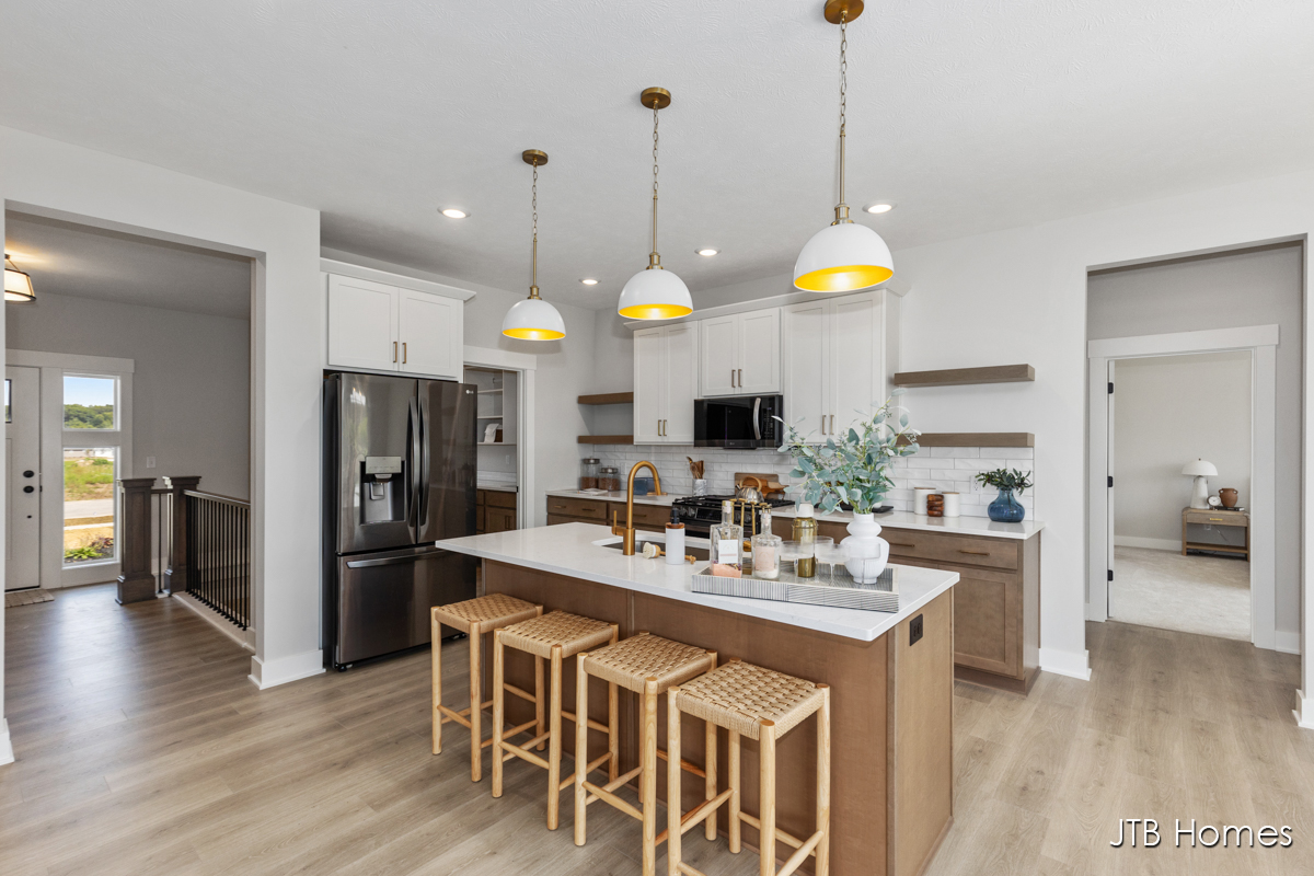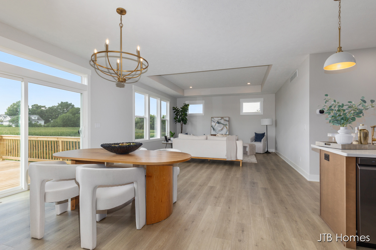 JTB Homes presents our Oakwood floorplan with the brand new modern looking front elevation. Welcome to one of the newest floor plans from JTB homes! This is a modern and open ranch plan with a large living room, dining area, and kitchen with a butlers pantry. You will find a 12 ft wide, 3rd stall garage. The extras located throughout the home start with solid surface flooring, upgraded handrails, a 2nd sink in the spacious pantry, 9 ft. ceilings on the main floor with a 10 ft. tray ceiling in the living room. The home comes with black stainless steel LG kitchen appliances.
