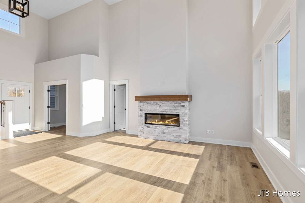 JTB Homes presents our Sycamore floor plan in the Valley Point community! Located in the Caledonia school district, this home boasts over 2,800 finished square feet with a finished recreation room in the walkout basement. The main floor features a flex room off the foyer, a two-story living room with a fireplace that seamlessly transitions to the beautiful kitchen. In the kitchen, you will find a large pantry and an island, making it a host’s dream. The primary bedroom features a tray ceiling, dual-sink vanity, and a large walk-in closet. The mudroom and laundry room round out the main floor. Upstairs, you will find 3 more bedrooms and a full bathroom. The downstairs bathroom and bedroom are unfinished and leave plenty of room for customization by the recreation room. Enjoy your deck and patio in the backyard. Landscaping is included!