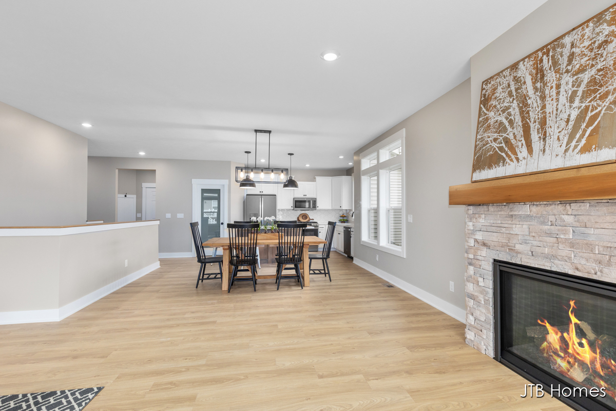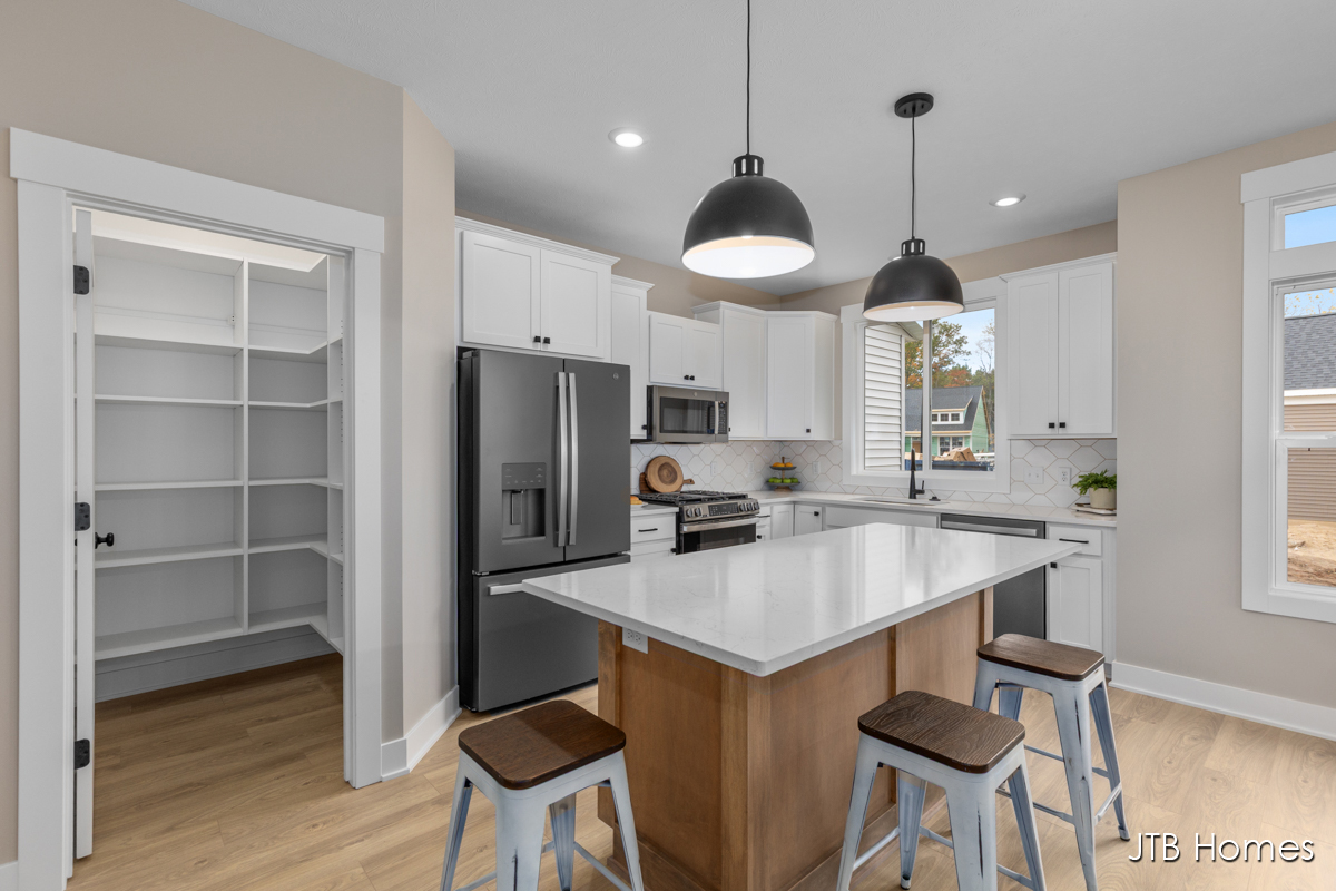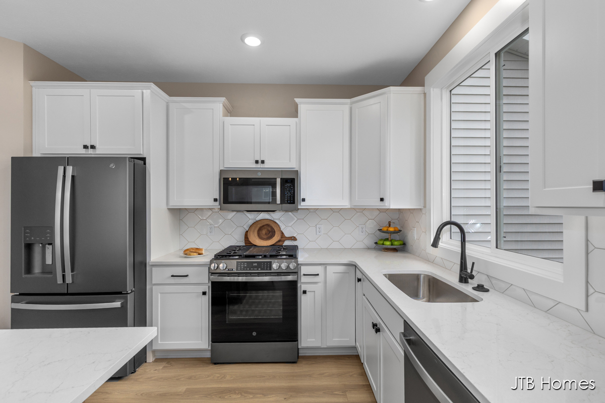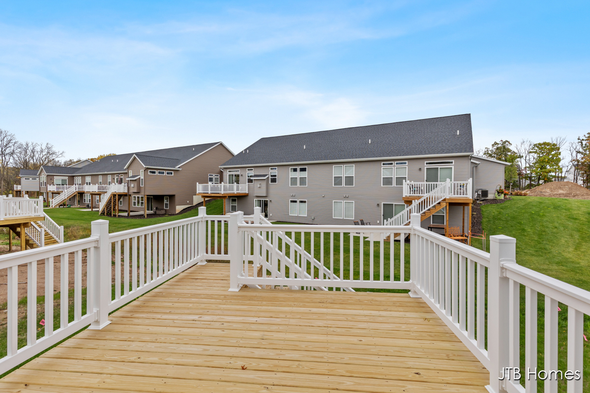 Welcome to the Villas at The Ravines! JTB Homes presents our Encore floor plan with attached 3-stall garage! Ranch style condo featuring an open great room with laminate flooring, dining, and kitchen complete with quartz countertops, stainless steel appliances, walk-in pantry, and large snack bar. The Primary suite features a walk-in closet, private bathroom with quartz countertops, shower, dual-sink vanity and access to main floor laundry. Additional bedroom gives added space, as well as a walk in closet and adjacent full bathroom. Mudroom off the garage with bench and closet. Unfinished lower level with future third bedroom, future recreation room and plumbed for future full bathroom. Zero step entrance from both the garage and front door. Condo is complete!