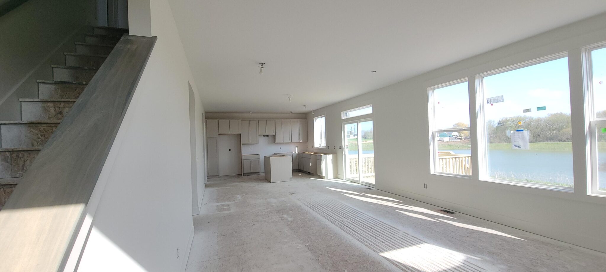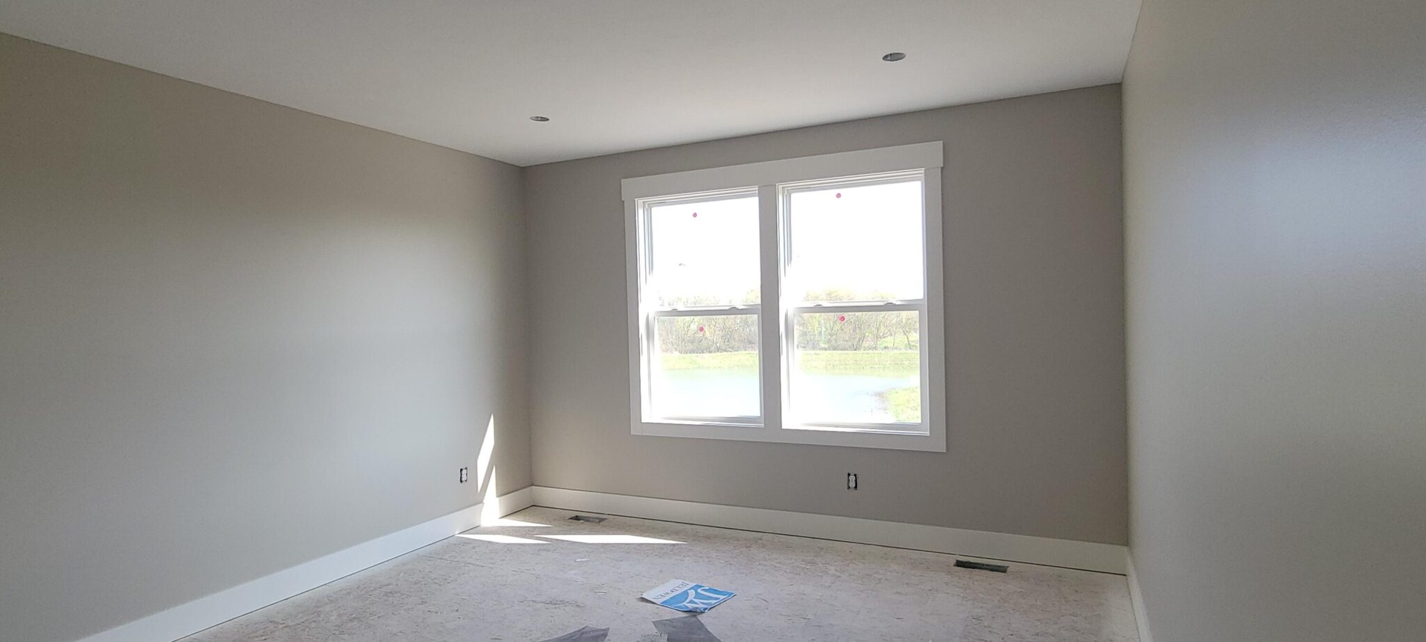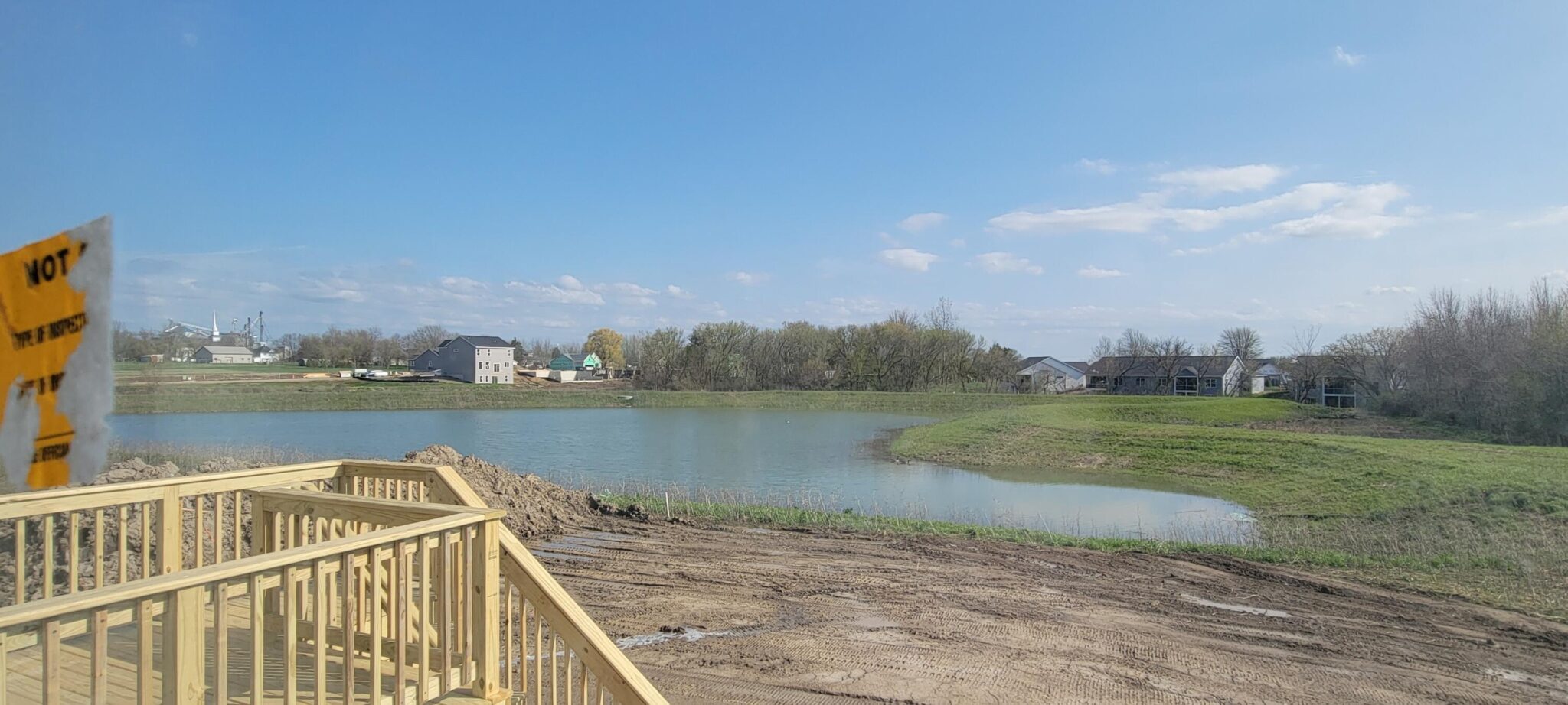 This is our beautiful Cedarwood plan in Prairie Winds featuring a curated, modern farmhouse palette. Exterior includes Brownstone siding, black trim, black shingles, dry-stack stone, black garage door, black exterior windows and jet black craftsman front door. Inside, the kitchen offers beautiful painted cabinets, solid-surface counters, workstation sink, and LG stainless appliances. Main living spaces feature has added windows flanking the electric fireplace, and upgraded lighting throughout. Bed 1 includes upgraded carpet, solid-surface vanity, LVT flooring, matte-black plumbing fixtures, and semi-framed shower door. 10’x10′ deck with stairs on this daylight, pond lot complete this fabulous home. Other lots and plans available. Expected completion is around June.