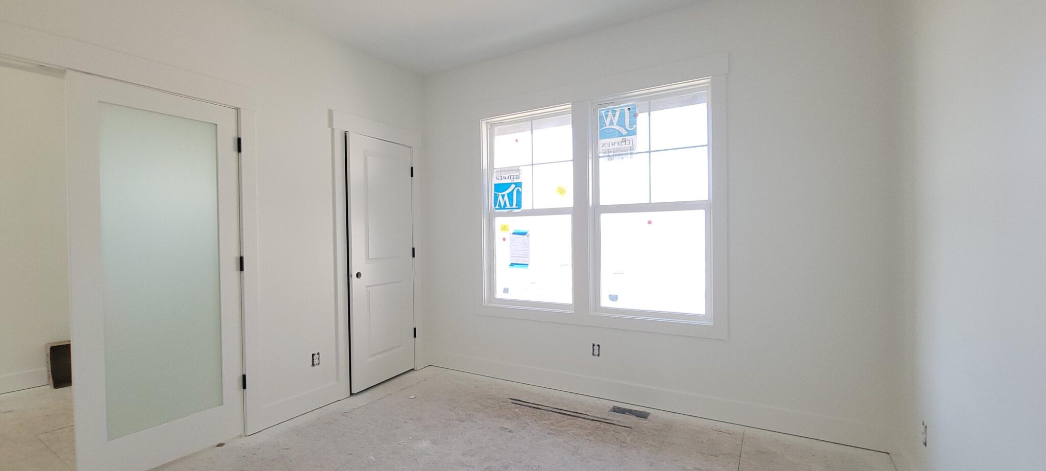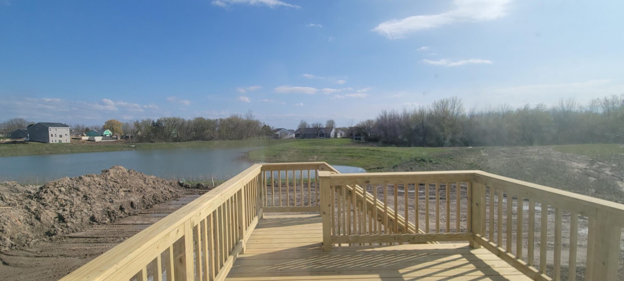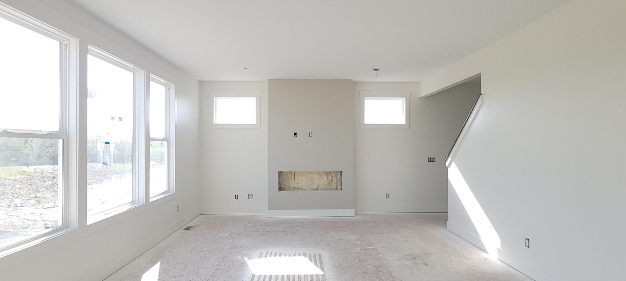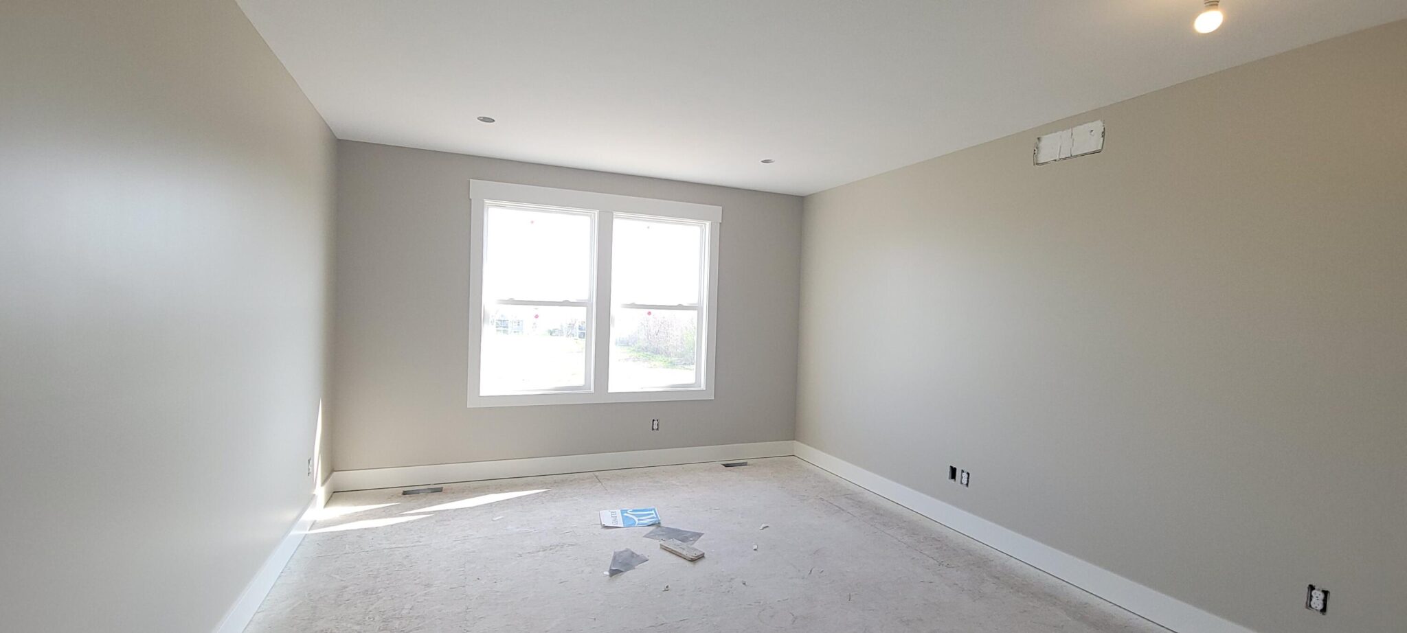 This is our beautiful Cedarwood plan in Prairie Winds featuring a curated, modern farmhouse palette. Exterior includes Brownstone siding, black trim, black shingles, dry-stack stone, black garage door, black exterior windows and jet black craftsman front door. Inside, the kitchen offers beautiful painted cabinets, solid-surface counters, workstation sink, and LG stainless appliances. Main living spaces feature has added windows flanking the electric fireplace, and upgraded lighting throughout. Bed 1 includes upgraded carpet, solid-surface vanity, LVT flooring, matte-black plumbing fixtures, and semi-framed shower door. 10’x10′ deck with stairs on this daylight, pond lot complete this fabulous home. Other lots and plans available. Expected completion is around June.