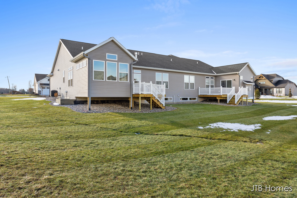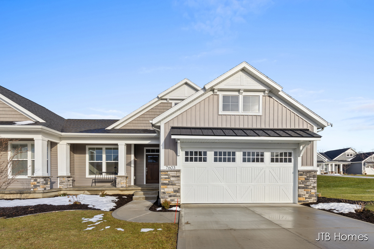Now Complete! JTB Homes presents our Carrington floor plan in the highly sought-after Water’s Edge Condos South in Allendale. This 3-bedroom condo boasts over 2,200 finished square feet. The main level features a Michigan room with a cathedral ceiling and access to a 12×12 deck with stairs, a large living and dining area, a kitchen with large center island and walk-in pantry, a mudroom with a walk-in closet, and main floor laundry. The main floor primary suite has a walk-in closet, and an attached bathroom with dual sinks and walk in shower. Rounding out the main floor is additional bedroom, full bathroom and laundry room Downstairs is another bedroom and bathroom, plus finished recreational room. Tons of storage as well.